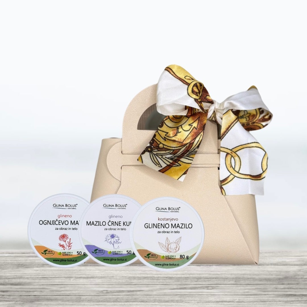 Glina mineralizira, pomiri in regenerira kožo, rastlinska olja pa jo globinsko nahranijo in zmehčajo. Vsako mazilo ima svoj botanični podpis in naravni namen – zato komplet pokrije več potreb kože v enem paketu. Popolna rešitev za ljudi, ki želijo naraven “home apothecary”.