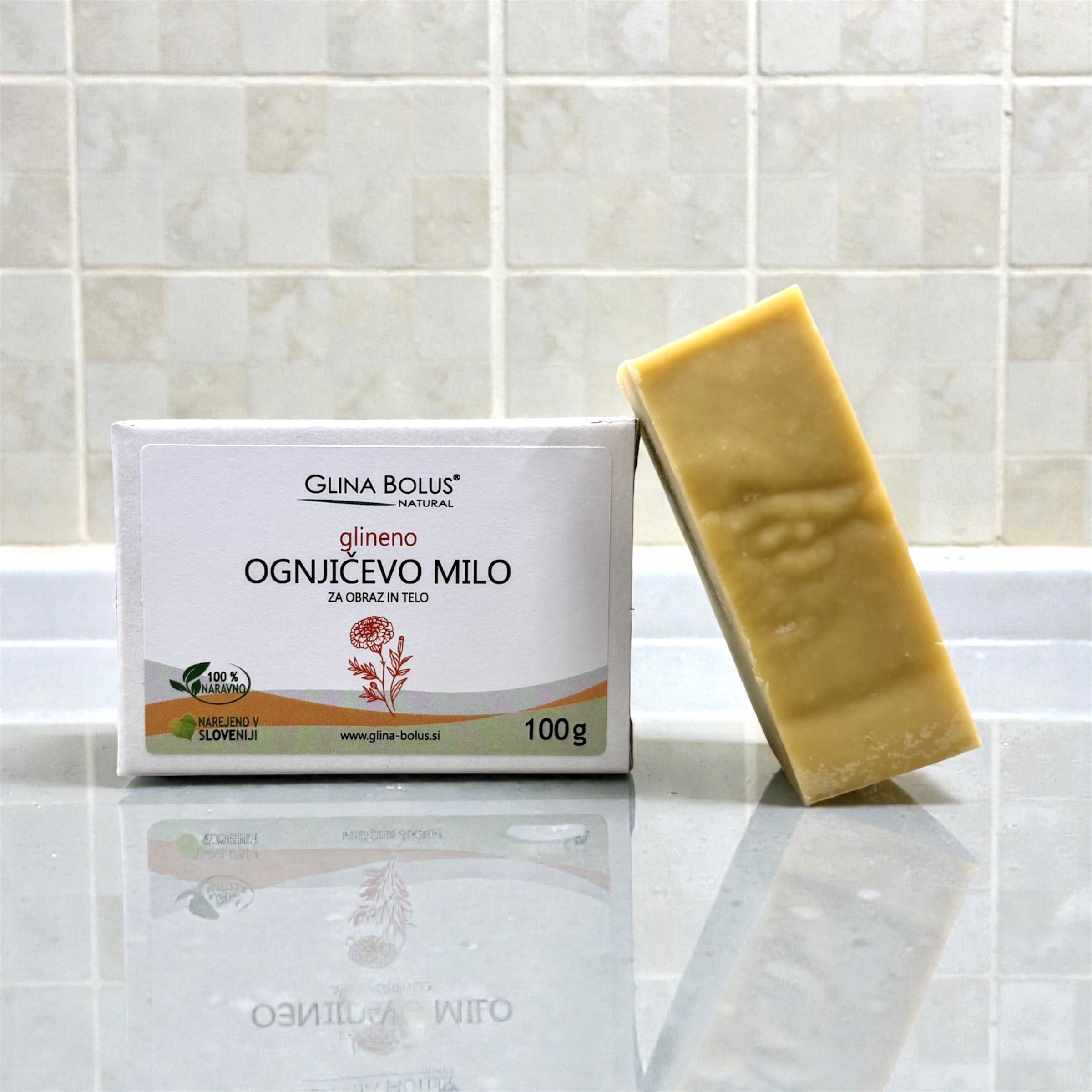Ognjičevo glineno mazilo + ognjičevo glineno milo. 100 % naravno, brez parfumov, brez dražil in brez nepotrebnih dodatkov.